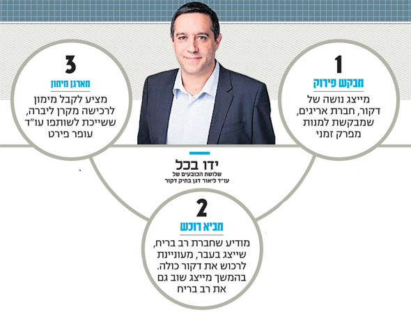 חודשיים יחלפו עד שרב בריח, באמצעות דגן, תופיע הבוקר בפני השופטת דברת ותילחם לרכוש את העסק, המפעל והקרקעות. דגן בעצם גם הניע את הליכי הקריסה של דקור, וגם סידר לה רוכש. "כלכליסט" שאל את רב בריח מתי גילתה שדקור עומדת למכירה. מקורב לדונרשטיין אמר כי דגן ייצג את בעלי רב בריח כשהתעניין ברכישת מפעל נגב קרמיקה בירוחם, וכי בשיחה ביניהם עלה שמה של דקור. "אבל הוא לא שקל כלום עד הקפאת ההליכים, מאחר שלא ידע על כך כלל", אמר הגורם. הדיון הסתיים בהחלטה קצרה של השופטת דברת, שציינה כי ההליכים המשפטיים "יצרו כדור שלג של נושים שונים" שהחלו בפעילות נגד דקור, באופן שכמעט גרם לשיתוקה המוחלט.
