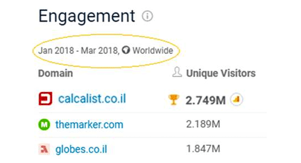חברת סימילארווב מסכמת רבעון ראשון לשנת 2018 ומשחררת את נתוני תנועת הגולשים (Traffic) באתרי הכלכלה בישראל ללא הפתעות, כלכליסט ממשיך להוביל את הקטגוריה בפער משמעותי, המתחרים ממשיכים להיאבק על המקום השני