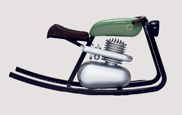 המעצב הגרמני פליקס מונזה חושב שגם לילדים מגיע ליהנות מקצת עוצמה דו־גלגלית בין הרגליים. המוטו־רוקר שלו הוא גלגול מודרני של סוס הנדנדה, הפעם כרפליקה של אופנוע ספורט חתיכי ומוקפד. את מקום העץ הקלאסי תופסים מתכת, עור ופלסטיק, שמלווים בתג מחיר של 1,300 יורו.