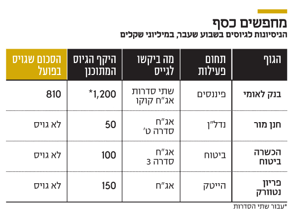 בשבוע שעבר נתקלו ארבע הנפקות של גופים מתחומי פעילות שונים בהתקררות פתאומית וחריגה של השוק. הגיוס הבולט מבחינת היקפו היה דווקא זה שהושלם בהצלחה - אג"ח הקוקו של בנק לאומי. הבנק החליט לגייס יותר מ־810 מיליון שקל בשלב המוסדי בשתי סדרות, לאחר שזכה לביקושים בהיקף של 1.2 מיליארד שקל. תוכניות הגיוס המקוריות היו ל־1.2 מיליארד שקל, כך שלמעשה הבנק היה יכול לעמוד ביעד המקורי, אך לבסוף גייס בהיקף נמוך יותר, בשל תנאי השוק. בלאומי טענו שממילא לא היו זקוקים לסכום המקורי, ושהיקף הגיוס נובע מתנאי השוק.