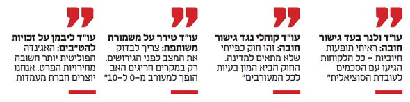 גם עו"ד יעקב בלס, ממתנגדי החוק ומיוזמי הבג"ץ שעומד כנגדו מאמין שהחוק מיותר. "מי שרצה לכתוב כתב תביעה פוגעני יעשה את זה גם בדיחוי של חודש וחצי. למעמד היותר מוחלש נוצרת בעיה כי אם הולכים למצב של גישור של חודשיים, בזמן הזה אנשים מבריחים כספים ובסוף ומגיעים לתביעות".