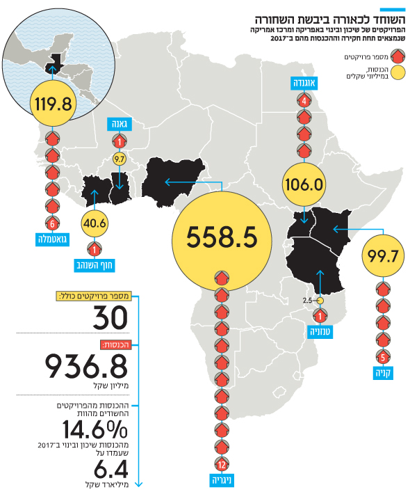 לפי הדו"חות הכספיים של החברה ל־2017, לשיכון ובינוי יש 30 פרויקטים במדינות אלה (ראו תרשים). ההכנסות מהפרויקטים האלו בשנה זו הסתכמו ב־937 מיליון שקל. לשם השוואה וכדי להבין את ההיקף, כלל הכנסות החברה מפעילות התשתיות בחו"ל, הכוללת גם את מוזמביק, קולומביה וארה"ב (טקסס), עמדה על 1.5 מיליארד שקל באותה שנה; וכלל הכנסות החברה הסתכמו ב־6.4 מיליארד שקל. כלומר, ההכנסות מהפרויקטים החשודים מהווים כמעט 15% מכלל ההכנסות של שיכון ובינוי ויותר מ־60% מהכנסות החברה בחו"ל ב־2017.