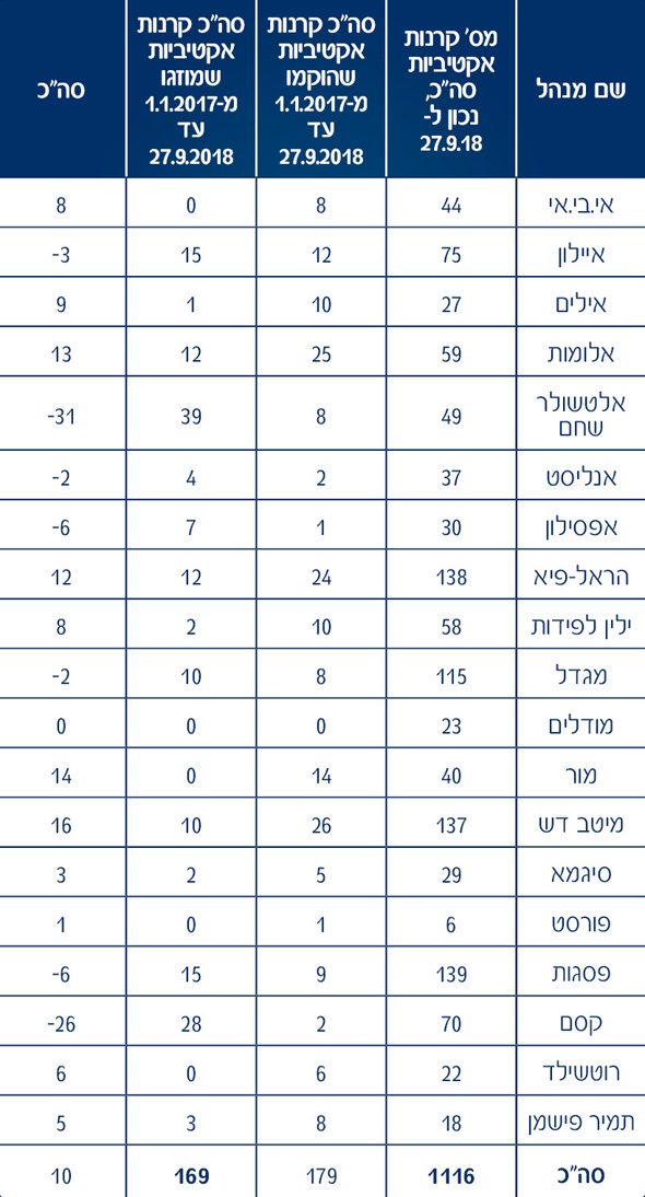 כלכליסט פרוייקטים החליט לבדוק ולתמצת בטבלה אחת את המספרים – מי פותח קרנות חדשות ומי מצמצם ומתכנס לניהול השקעות מקצועי.