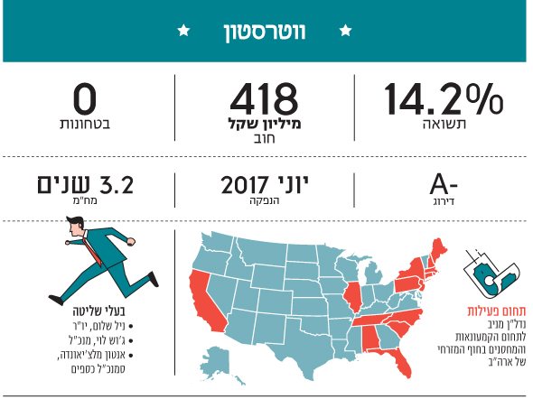 ווטרסטון, שהוקמה באיי הבתולה הבריטיים במרץ 2017 לטובת הנפקת אג"ח בתל אביב, מתמקדת בהשכרת שטחי נדל"ן מניב לתחום הקמעונאות והמחסנים בחוף המזרחי של ארה"ב. חודשיים לאחר הקמתה, וחודש לפני הנפקת האג"ח, זכתה ווטרסטון לדירוג מקדמי של A מ־S&P מעלות. אולם הדירוג לא החזיק מעמד זמן רב. בתוך פחות משנה, כבר באפריל 2018, הוא הופחת לרמה של -A בעקבות שחיקה בפרופיל הסיכון הפיננסי. בחברת הדירוג לא הסתפקו במילים מכובסות וציינו במפורש כי ההרעה ביחסים הפיננסיים של ווטרסטון היא עקב "שימוש החברה בתמורת האג"ח להשקעות בנכסים, בשונה מתוכניתה המקורית לפרוע חוב בנקאי בחלק משמעותי מתמורת האג"ח שהנפיקה".