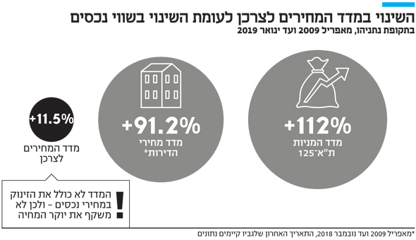 בזמן שהמדד מערבב בין סעיפים של מוצרים ושירותים סחירים ובלתי סחירים, הוא מתעלם באופן מוחלט מסוג אחר של מחירים שזינקו בתקופת ממשלתו של נתניהו: מחירי הנכסים, לרבות נכסים פיננסים ונדל"ן.
