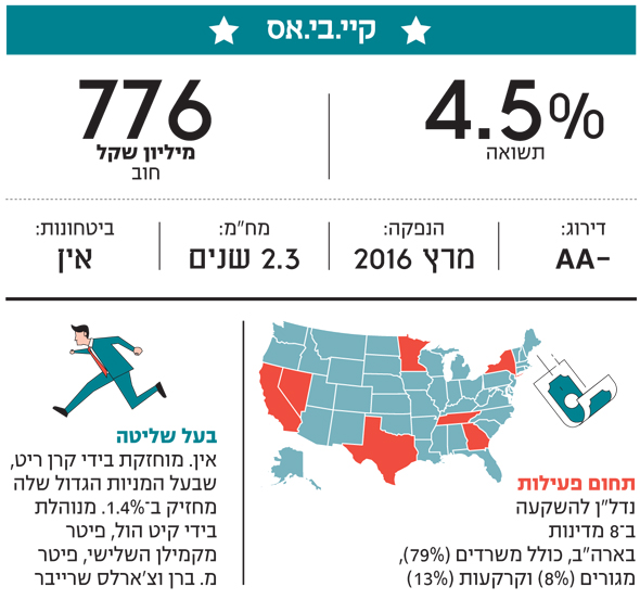 כך, לדוגמה, אג"ח של מבני תעשייה בעלת מח"מ דומה (סדרה ט"ו) נסחרת בתשואה של 2%, אף שהדירוג שלה נמוך מזה של KBS. האג"ח של KBS נפרעות בחמישה תשלומים שנתיים שווים, הראשון שבהם בוצע בתחילת החודש. כעת חובה של KBS למחזיקים מסתכם ב־776 מיליון שקל.