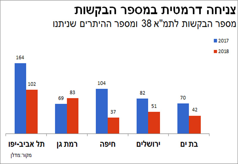 "ב–2016 התרחש מפנה כשהתברר שיש אי־ודאות לגבי אופן חישוב הזכויות, ומספר הבקשות להיתר צנח ביותר מ–16%. ב–2017 תוקנה הבעיה והירידה פסקה, אבל דווקא 2018 התגלתה כשנה של קריסה משמעותית".