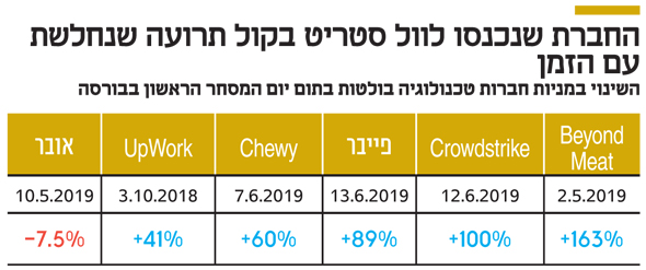 להשוות את 2019 ל־1999 הפך לאחד הדברים המאוסים ביותר עבור אנשי שוק ההון, אבל אפילו הם לא יכלו להימנע מזה בסוף השבוע האחרון. טירוף ההנפקות בוול סטריט שגם פייבר הישראלית, שהקימה פלטפורמה לחיבור בין פרילנסרים לנותני עבודה, הפכה לאחת השחקניות בו, חזר במלוא עוצמתו והותיר מאחור את טראומת חברת שיתוף הנסיעות אובר. אבל פייבר לא הייתה השחקנית הראשית בהצגה הזאת. התואר שמור ל־chewy האמריקאית שהונפקה במקביל גייסה מיליארד דולר ומנייתה ניתרה ב־60% ביום המסחר הראשון. לאחר הקפיצה, החברה, שמוכרת מנויים לרכישת מזון וציוד נלווה לבעלי חיים באפליקציה, שווה 14 מיליארד דולר למרות שהפסידה 267 מיליון דולר על הכנסות של 3.5 מיליאד דולר ב 2018. למעשה, החברה מפסידה בצורה עקבית מאז הקמתה ב־2011.