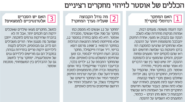 "כהורה אתה רוצה לעשות את הדברים הכי נכונים עבור הילדים שלך, אבל קשה לדעת מה הדברים האלה", אומרת אוסטר ל"מוסף כלכליסט". "כשהורים מחפשים תשובות באינטרנט, לפעמים הגישה לכל כך הרבה מחקרים היא חיסרון, ובסוף החיפוש מצבם גרוע יותר: הרבה פעמים אין מספיק מחקר על הנושאים שמעניינים אותם, או שהמידע לא טוב דיו, וממילא אנשים נמשכים למה שתומך בעמדתם. לא חסרות דעות באינטרנט, אנשים כותבים דברים מנוגדים, לא תמיד באיפוק. נתונים וכלכלה יכולים לעזור לדעת מהו הדבר הנכון, וזה מה שאני מנסה לעשות בספר".