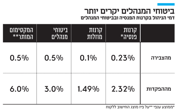 ביטוחי המנהלים הנמכרים כיום מציעים לרוב דמי ניהול של 3% מההפקדה ו־0.5% מהצבירה לכל אורך תקופת החיסכון. לעומת זאת, קרנות הפנסיה מציעות דמי ניהול נמוכים בהרבה - 2.32% מההפקדות ו־0.23% מהצבירה, בממוצע ענפי - אבל רק לתקופה של 5 שנים לפחות, וללא הבטחה לשאר התקופה. בקרנות הפנסיה המוזלות שנבחרו על ידי משרד האוצר מוצעים דמי ניהול סופר עוד יותר, ל־10 שנים. אלא ששם כל שלוש שנים עורך משרד האוצר מכרז חדש לבחירת קרנות מוזלות, ורוב הסיכויים שהקרנות הקטנות יזכו שוב ושוב במכרזים ויחדשו את ההתחייבות לדמי ניהול נמוכים וגם אם ייבחרו קרנות חדשות.