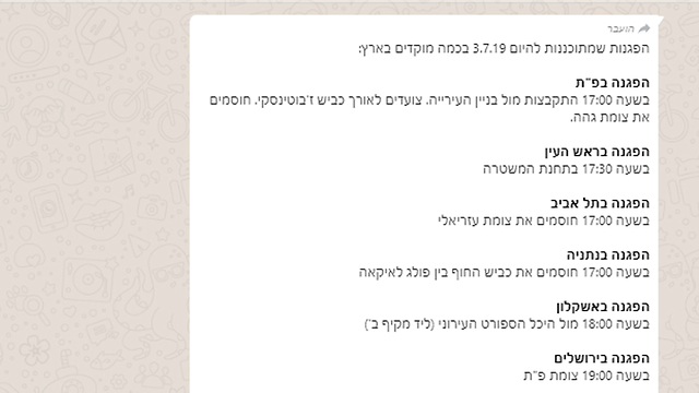 מהודעות שהופצו ברשתות החברתיות עולה כי היום ההפגנות וחסימות הכבישים במחאת יוצאי אתיופיה צפויות להתחיל מ-15:30. לפי ההודעות שהופצו, ייחסמו משעות אחר הצהריים צומת עזריאלי בתל אביב, מחלף פולג שבנתניה (כביש החוף), כביש 4 (בראשון לציון וביבנה), הכניסה לירושלים (גשר המיתרים), וכן ייערכו הפגנות בצומת קריית אתא, צומת יקנעם, כיכר העצמאות בעפולה, תחנת המשטרה בראש העין, בכביש 431 (הכניסות והיציאות מהערים), בצומת אל על, בצומת בילו שליד רחובות, בצומת קסטינה, באשקלון (צומת היכל הספורט) ובבאר שבע (התחנה המרכזית).