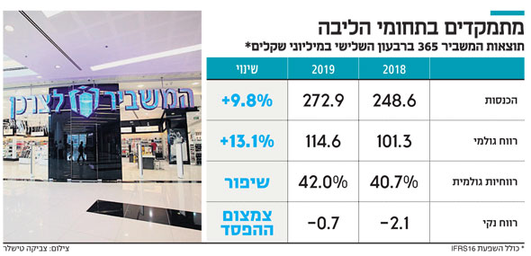 המשביר 365 שיפרה את הכנסותיה ברבעון השלישי של 2019. גם הרווחיות הגולמית השתפרה, אך נותרה נמוכה יחסית לשוק האופנה