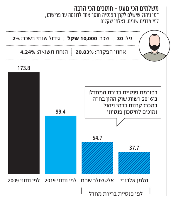 רפורמת פנסיית ברירת המחדל, שהואצה ב־2019 עם הצטרפותן של קרנות מובילות למכרז של משרד האוצר, חתכה את התשלומים. המשמעות עבור החוסכים: כל 0.1% של ירידה בדמי הניהול תורם כ־2% תוספת לקצבת הפנסיה