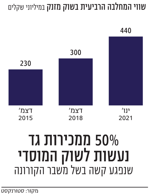 משבר הקורונה הוביל לצמיחה חדה בשוק המזון, אבל יותר מכל ניכרה השפעתו על שוק החלב. עד ל־2020 מכירות מוצרי החלב צמחו בשיעור חד־ספרתי, אם בכלל, בחמש השנים האחרונות. בשנה החולפת צמחו המכירות ב־11.1%, וניכר כי תקופת הקיפאון פסקה. לצד שלוש המחלבות הגדולות בלטה דווקא הרביעית והקטנה מכולן - מחלבות גד.