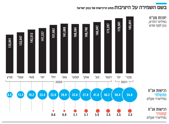 4. למרות שהריבית היא הכלי המרכזי להשגת יעדיו של בנק ישראל, לבנקים מרכזיים כלים נוספים, קל וחומר כשהריבית נושקת לאפס וכבר אין הרבה לאן לרדת. שני הכלים הנוספים הם רכישת דולרים כדי לעודד יצוא ובכך את הצמיחה במשק. ותוכניות לרכישת אג"ח ממשלתיות בעתות משבר וזאת כדי להשפיע, מחד, על הריבית לטווח הארוך, אבל גם כדי לסייע לממשלה לממן בעקיפין את הגירעונות שלה באמצעות יצירת ביקוש למכשירי החוב שלה (אג"ח).