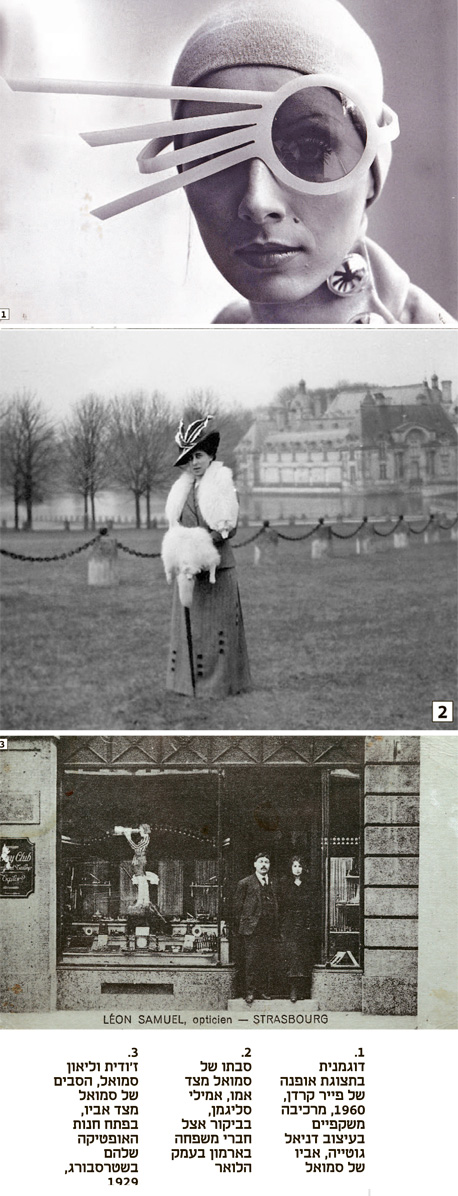 בקליניקה של קלוד סמואל בתל אביב תלויה על הקיר גלויה ממוסגרת, צילום בשחור־לבן של זוג צעיר עומד זקוף בפתח חנות משקפיים בשטרסבורג. "ז'ודית גולדשטיין וליאון סמואל, סבא וסבתא שלי מצד אבא", אומר סמואל ומפציר בי להפוך את הגלויה ולראות מה כתוב בצדה השני בכתב יד צפוף. "הם ניסו את מזלם בשטרסבורג", הוא מספר, "אבל לא ממש הצליחו, וכמה שנים אחרי שצולמה התמונה עברו השניים, אופטיקאים־אוּמנים במקצועם, לפריז והתגוררו ברובע המארֶה. לסבתא שלי היה ארגז עדשות והיא נהגה להסתובב איתו באזור הקצבים בלה וילט ולבדוק את הראייה של יושבי בתי הקפה. אנשים היו מזמינים ממנה משקפיים, ובנם דניאל - אבא שלי - עזר לה כבר מגיל 14 בחיתוך העדשות במטבח הביתי".