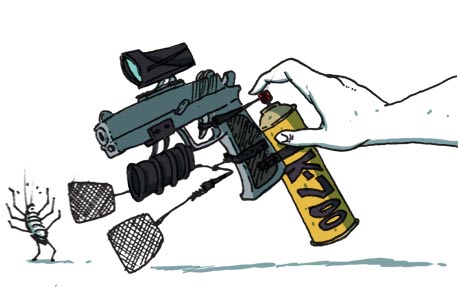 האובר־קיל: "טכנולוגיית ניטור מי הביוב היא פרימיטיבית באופן שערורייתי! פיתחנו מוצר חדש שיצעיד אותה לעידן החלל: צוללת רדיואקטיבית שתשייט בבריכות הטיהור ותשדר דרך הלוויין את נתוני המים הישר למגופה שבפתח הצינור. הם לא יוכלו להמשיך להתנהל ככה בלעדינו לאורך זמן". כן? אתם בטוחים בזה? 100 שנה הם הסתדרו עם המבחנות האלה, ועכשיו הם לא יכולים להמשיך ככה? ומה יהיה עם הג'ינג'י שאחראי על מבחנות הניטור וסגירת המגופות? "שילך ויקים לו סטארט־אפ משלו".