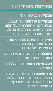 מאייר, שהיתה העובדת ה-20 שהצטרפה לגוגל ואחת הדמויות הבכירות בחברה, תצטרך לייצב את יאהו השוקעת אחרי שרשרת של מנכ"לים מתחלפים בקצב מסחרר