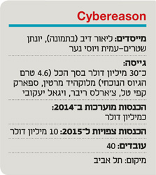ענקית התעופה האמריקאית לוקהיד מרטין מובילה השקעה של 25 מיליון דולר בסטארט־אפ הישראלי סייבריזן (Cybereason). לפי הערכות, סבב הגיוס משקף לחברה הצעירה, שצפויה להכניס השנה כ־10 מיליון דולר, שווי מוערך גבוה מ־100 מיליון דולר.