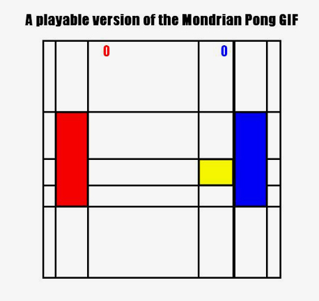 קהילת המפתחים והמעצבים b3ta הציבה בפני חבריה אתגר: ליצור משחקים בהשראת יצירות אמנות מפורסמות. אחד מהם נענה ויצר אנימציית ג'יף שמיזגה ציור של מונדריאן עם המשחק הקלאסי פונג, וזו בתורה מצאה את דרכה אל ידיה של מתכנתת בשם קריסטינה הנסן שהפכה אותה למשחק של ממש.
