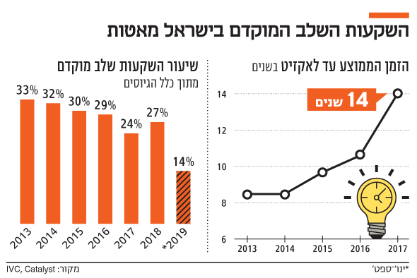התארכות הזמן עד לאקזיט, דעיכת הבהלה להנפקות והצטרפותן של קרנות פרטיות עם כיסים עמוקים מאתגרות את הקרנות שמתמחות בהשקעה בשלבים המוקדמים של חברות סטארט־אפ. שחקנים בתחום ההון סיכון טוענים שעל קרנות השלב המוקדם לפתח מודל חדש של השקעה, לוותר על החלום לרווח העצום ואפילו להרגיע את קרבות האגו