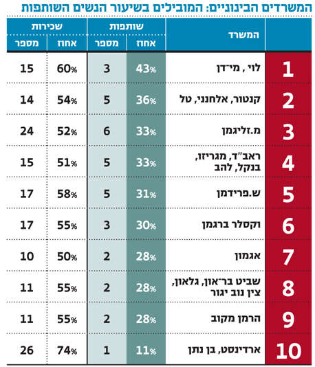 שיעור הנשים השותפות בעשרת המשרדים הגדולים