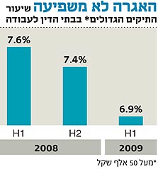 ואולם, נתונים מהדו"ח החצי־שנתי של הנהלת בתי המשפט עצמה חושפים כי לא רק שמספר התביעות בשנה החולפת לא גדל עקב הפטור מאגרה, אלא שלמעשה אף קטן. על פי הנתונים, מספר התיקים בנושאי שכר שסכום התביעה בהם היה גבוה מ־50 אלף שקל עמד בששת החודשים הראשונים של 2009 על 1,989, לעומת 2,413 בתקופה המקבילה אשתקד. כלומר, אף שהאגרה בוטלה, נרשמה דווקא ירידה של 17.5% במספר התיקים הגדולים. לשם השוואה יש לציין כי מספרם של כלל התיקים בבתי הדין לעבודה קטן באותה תקופה בשיעור של כ־9% בלבד, וזאת למרות העובדה שבערעורים לבית הדין הארצי לעבודה האגרות דווקא הוכפלו. עו"ד גולן ציין, כי "ראוי היה שנתונים אלה יימסרו ביוזמת הנהלת בתי המשפט ולא על ידי ארגונים לא־ממשלתיים".