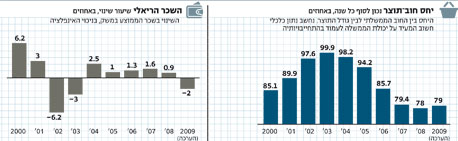 על השאלה השנייה, החשובה יותר, קיבלנו תשובה מנומקת ממי שבאמת אמורים לענות ברצינות על שאלות מסוג זה. לפני קצת יותר משנתיים פרסמו מינהלת חטיבת המחקר בבנק ישראל, ד"ר קרנית פלוג והמשנה שלה, ד"ר מישל סטרבצ'ינסקי, מחקר מקיף על תהליך הצמיחה בישראל ב־45 השנים האחרונות. אחרי שחלקו לנתניהו את הכבוד המגיע לו ("בחמש השנים האחרונות היינו עדים לשיפור ראוי לציון בניהול המאקרו־כלכלי"), ניגשו פלוג וסרבצ'ינסקי לדבר האמיתי.