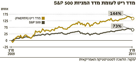 קרנות הריט רשמו תשואה של 25% ב־12 החודשים האחרונים, כאשר מדד המניות S&P 500 עלה רק ב־14.5%. מנקודת השפל של המשבר במרץ 2009 הפער הוא עוד הרבה יותר גבוה, לאחר שמדד הריט עלה ב־144% לעומת עלייה של 73% במדד S&P 500 (ראו גרף).