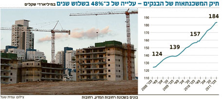 כך, מאמצע 2007 זינקו מחירי הנדל"ן ביותר מ־60% (נומינלית) בממוצע. בשנת 2010 העמידו הבנקים משכנתאות חדשות בהיקף שיא של 47.8 מיליארד שקל - זינוק של כ־152% בהשוואה ל־2006. המשכנתה הממוצעת במרץ 2011 עמדה על לא פחות מ־594 אלף שקל, סכום המהווה קפיצה של כ־129% בהשוואה לגובה המשכנתה הממוצעת בדצמבר 2006 - 259 אלף שקל. תיק המשכנתאות של הבנקים עומד כיום על כ־184 מיליארד שקל.