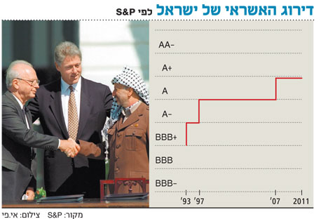 סוף מאי 2011. הריחוף בין ענני התקווה מסתיים בנחיתה על קרקע המציאות. חברת דירוג האשראי הבינלאומית פיץ' (FITCH) מודיעה על השארת דירוג האשראי של ישראל ללא שינוי. בדיוק חודש קודם לכן פרסמה הודעה זהה גם חברת הדירוג הגדולה יותר, מודי'ס (MOODY'S). ביצועיו המרשימים של המשק הישראלי מאז היציאה מהמשבר הכלכלי דווקא תומכים בהעלאת הדירוג, אבל לחברת פיץ' יש הסבר משכנע: דירוג האשראי של ישראל ממשיך להיות מוגבל על ידי המצב הגיאו־פוליטי, שעלול לגרום לעלייה בהוצאות הביטחון של ישראל.