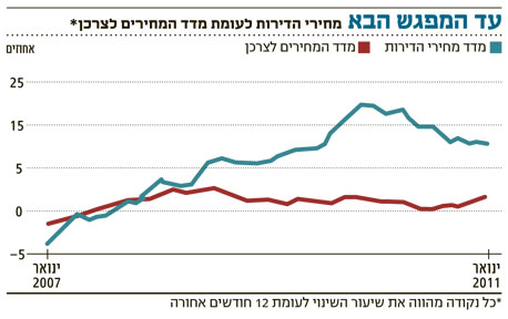 די מפתיע שמחאת האוהלים מופנית נגד שכר הדירה הגבוה ולא נגד מה שחולל אותו - העלייה החדה במחירי הדירות. בשנתיים האחרונות, עד חודש יוני, עלה סעיף הדיור במדד המחירים, המודד את השינויים בשכר הדירה, בשיעור מצטבר של 11.5%. מחירי הדירות בפועל, לעומת זאת, זינקו בתקופה זו (עד חודש מאי) בשיעור גדול פי שלושה, של 36%. מדובר כמובן רק בממוצע ארצי. באזורי הביקושים הגדולים, כמו למשל סביב השדרה שהציתה את אש המרד, עלו מן הסתם מחירי השכירות בשיעורים חדים הרבה יותר.