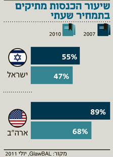 לאחר המשבר ירד שיעור ההכנסות מתיקים שעתיים בישראל ל־47% בממוצע, לעומת 68% בארה"ב