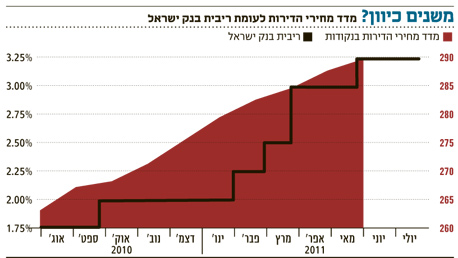 מדיניות הריבית של בנק ישראל שבה ועלתה בשבוע שעבר לכותרות, על רקע תרומתה הגדולה לזינוק שנרשם בשנתיים האחרונות במחירי הדירות. בנק ישראל עצמו ציין בדו"ח השנתי שלו לשנת 2010 שפורסם לפני שלושה חודשים כי "גורם מרכזי שפעל לעליית מחירי הדירות בתקופה האחרונה הוא הריבית הנמוכה, אשר הושפעה מהמדיניות המוניטרית המרחיבה שננקטה בתגובה למשבר. נראה שכשליש עד מחצית מעליית מחירי הדירות בשנתיים האחרונות מוסברים ברמתה הנמוכה של הריבית".