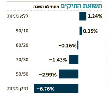 תשואת תיק האג"ח ה"טהור" מתחילת השנה גבוהה כבר ב־8% מהתשואה שהניב התיק המנייתי, וב־%1.4 מביצועי התיק המעורב 20/80