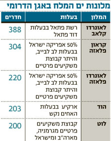 ששת המלונות באזור האגן הדרומי של ים המלח הם לאונרדו קלאב ולאונרדו פלאזה של רשת פתאל בבעלות דוד פתאל; קראון פלאזה של רשת קראון פלאזה, שנמצאת ב־50% בעלות של אפריקה ישראל והשאר בידי קבוצת משקיעים פרטית; צל הרים והוד בבעלות האחים נקש; ולוט בבעלות משקיעים פרטיים מגרמניה, ארה"ב וישראל.