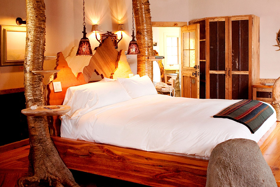 קוטג' בונים. אתר הנופש ווינויאן, ליצ'פילד, קונטיקט, ארה"ב. בבקתה מלאת בולי העץ ניתן ליהנות הן מקשר עם הטבע והן מכושר ההמצאה האדריכלי. האורחים יכולים לישון מתחת לגשר אמיתי של בונים שנמצא באזור, נוקה בלחץ והורכב מחדש בתקרת הסוויטה. גזעי עצים משמשים לתמיכה במבנה. האמבטיה כוללת מקלחת אדים מאבן ואמבטיה שמתמלאת באמצעות ברז דמוי מפל. מחיר: מ-950 דולר ללילה