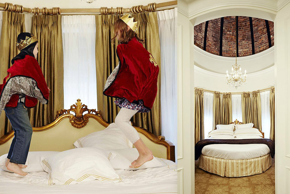 סוויטת אבירי מגדל הפלאזה, מלון פלאזה, ניו יורק, ארה"ב. הסוויטה כוללת מיטה עגולה במגדל עגול, עם תקרת קדרלה בעלת לבנים חשופות בגובה 7 מטרים. הסוויטה כוללת ארון המלא בתחפושות וצעצועים בסגנון ימי הביניים. הצוות פונה לאורחים הצעירים בכל רחבי המלון בתואר "כבוד הלורד" או "כבוד הליידי". הפלאזה מארגן גם פיקניק ההולם מלך (או מלכה) בטירת בלבדיר בסנטרל פארק. מחיר: מ-1,345 דולר ללילה