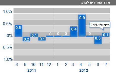 מדד חודש יולי שפרסמה הערב (ד') הלמ"ס עלה כצפוי בשיעור מתון של 0.1%.
