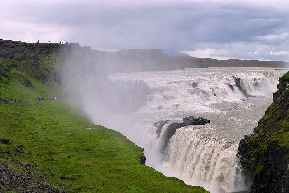 מפלי גולפוס, איסלנד: מפל מים מרהיב הנמצא בדרום מערב איסלנד. הוא אינו גבוה במיוחד, אך מרהיב ביופיו. בשל הבקיע הצר, נהר הקוויטה נראה כאילו הוא נעלם בתוך התהום