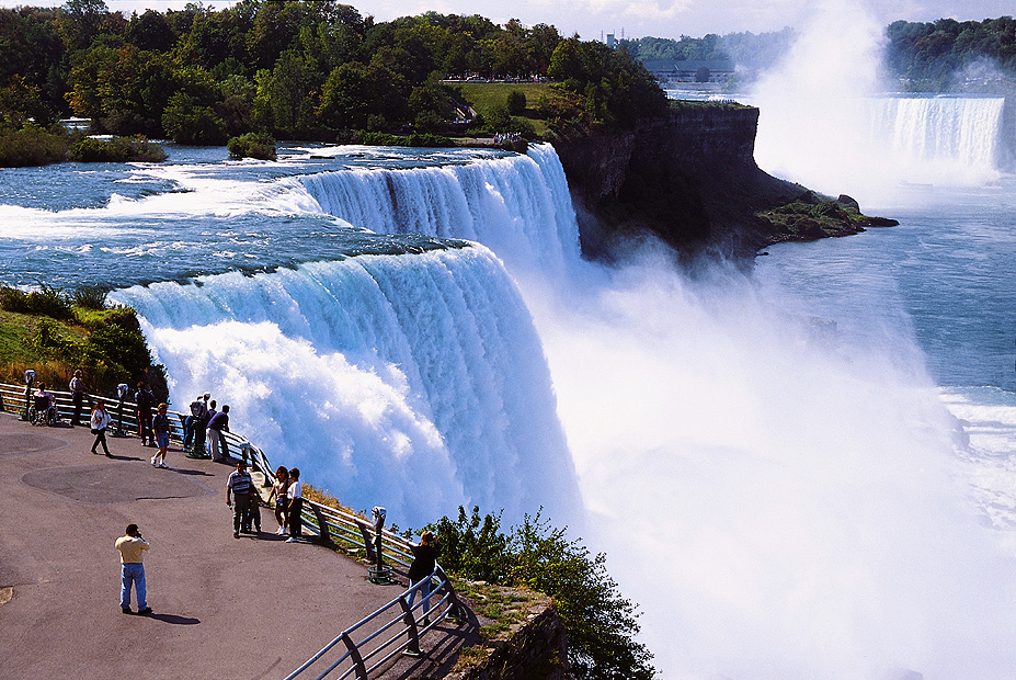 מפלי ניאגרה, ארה"ב/קנדה: המפלים המפורסמים ביותר בעולם, המסמלים את הגבול בין ארצות הברית וקנדה. מפלי ניאגרה מורכבים משני חלקים: צורת הפרסה בצד הקנדי והמפלים האמריקאיים בצד השני, המופרדים על ידי אי. המפלים הקנדים מרשימים יותר: המים נופלים מגובה 53 מטרים, בעוד שבמפלים האמריקאיים המים נופלים מגובה הנע בין 21-30 מטרים