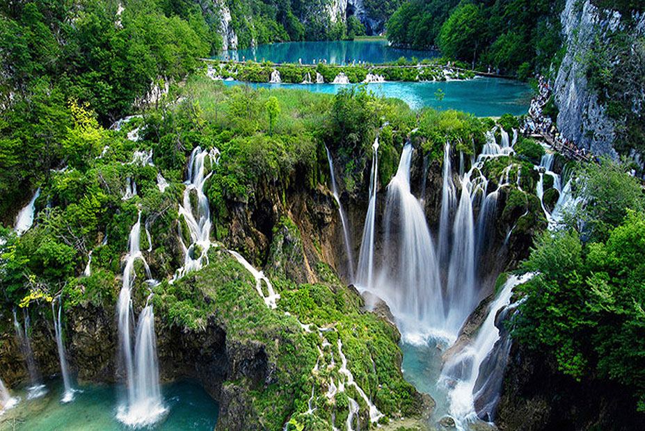 מפלי פליטביצה, קרואטיה: המפלים שוכנים בפארק הלאומי של אגמי פליטביצה בקרואטיה. הם אינם גבוהים במיוחד, אך יפיפיים בשל האשדים הרבים שהמים צריכים לגבור עליהם. מדובר על מאות מפלי מים. צבע המים משתנה מצלול לכחול וטורקיז