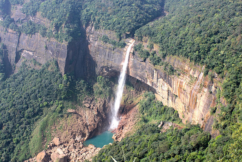 Nohkalikai Falls, הודו: המפלים נמצאים בהודו. המים נופלים מגובה 335 מטרים. בריכה נוצרה מתחת למפל, שבה הצבע עוטה על עצמו גוון ירקרק.