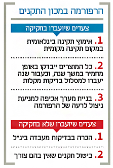 ועדת הכלכלה של הכנסת תדון היום ברפורמה המסתמנת במכון התקנים. הרפורמה היתה אמורה לעבור כחלק מחוק ההסדרים, אך בלחץ חברי הוועדה הופרדה להליך חקיקה נפרד. עיקרי הרפורמה הם שורת הקלות על יבוא מוצרים לישראל, כמו הסרת בדיקות פרטניות משורת מוצרים והסתפקות בהצהרת יבואן.