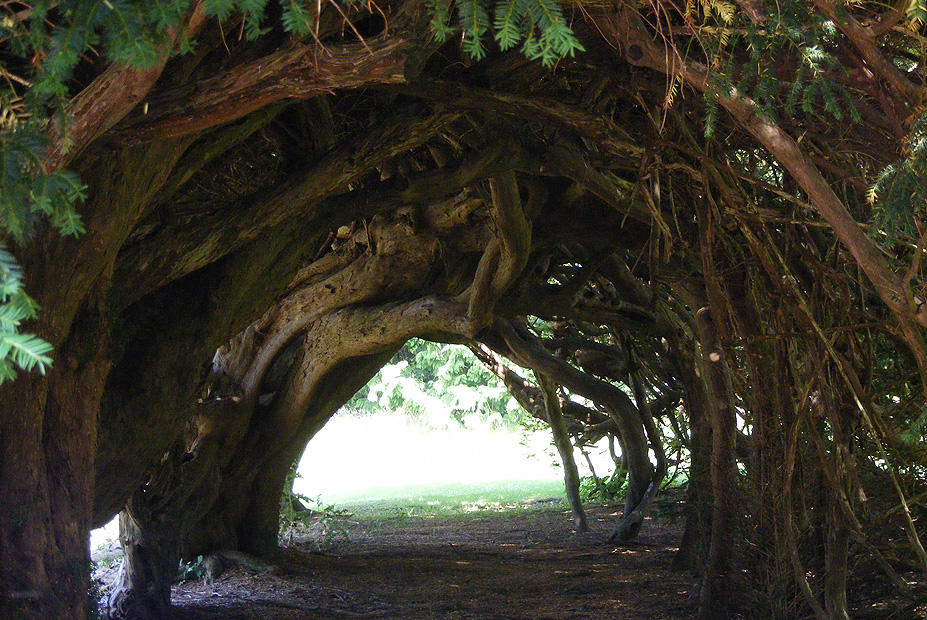 שדירת עצי טקסוס מעונב, בריטניה: השדרה היא יעד תיירותי פופולארי בוויילס. נדרשו תשע שנים של גיזום וזמירה להשיג את המעבר המקומר הזה. העצים שמרכיבים את השדרה נשתלו ככל הנראה במאה ה-18.