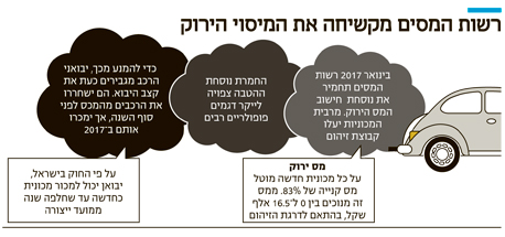 היבואנים פועלים להבאת מקסימום מכוניות לפני החמרת המס על רכבים מזהמים ב־2017; המטרה: יצירת מאגר כלי רכב שאפשר יהיה למכור בתחילת השנה הבאה לפי מתווה המס הישן; עודף יבוא הרכב הביא את הנהלת נמל אילת לשכור את שטח נמל התעופה ביטבתה לאחר ששטח האחסון בנמל הימי אזל
