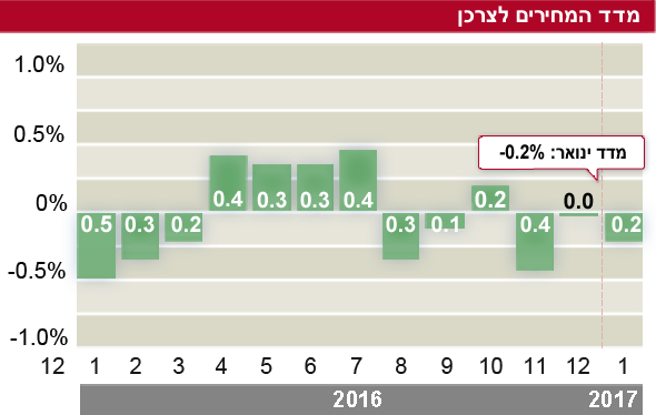 מדד ינואר ירד ב-0.2%, בדומה לציפיות בשוק ההון למדד שלילי בשיעור של 0.3%, כך נמסר מהלשכה המרכזית לסטטיסטיקה.