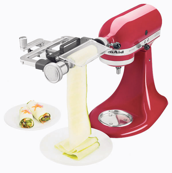 אף שהאביזר החדש של קיצ'ן אייד למיקסר שלה נראה כמו מתקן עינויים לירקות, סרטוני ההדגמה שלו מציגים תוצאות אלגנטיות למדי. ה־Sheet Cutter יודע לקחת ירקות רכים וקשים כאחד - מקישואים עד גזרים ובטטות - ולהפוך אותם לסליל ארוך ודק, שיכול לשמש אתכם במקום עלי לזניה או כל רעיון אחר שעולה על דעתכם.