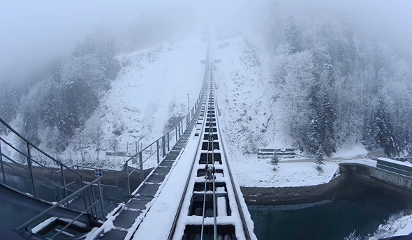 בכפר השוויצרי הקטן סטוס, בגובה 1,300 מטר מעל אגם לוצרן, נחנך החודש מסלול הרכבל התלול בעולם (ובהפרש ניכר מהמקום השני). התאים העגולים מסתובבים על צירם, כך שהנוסעים נשארים בפוזיציה מאוזנת לאורך כל הדרך, חרף עלייה תלולה של יותר מ־700 מטר, במסלול שאורכו 1,500 מטר בסך הכל.