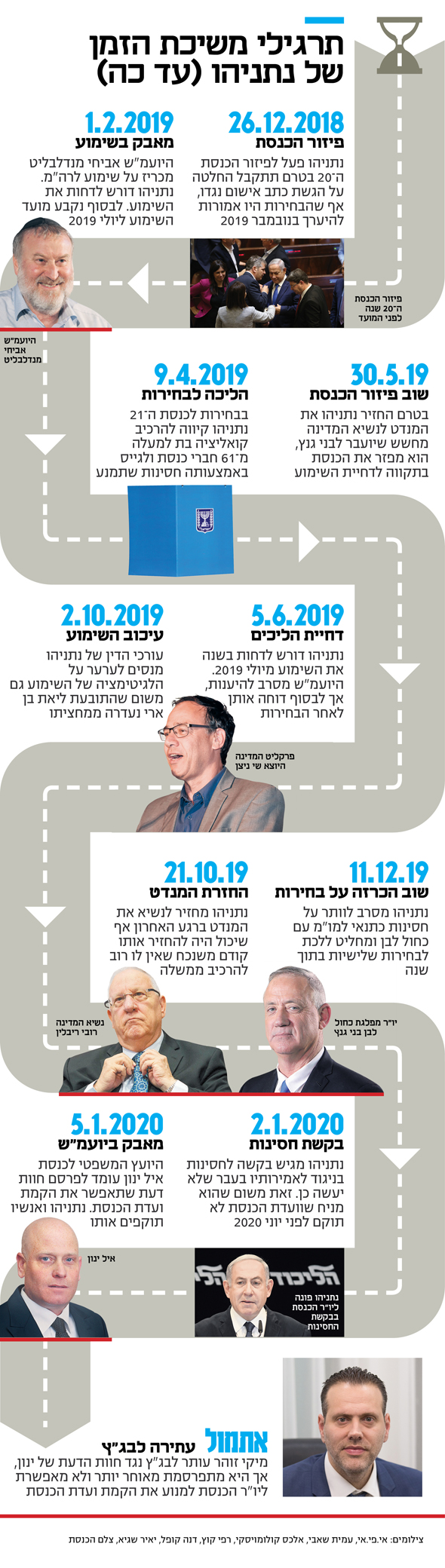 בקשת הצו והעתירה הן החוליות האחרונות בשרשרת הפעולות של ראש הממשלה שנתפסות כקניית זמן. גם אם נתניהו וחברים בליכוד מאמינים שינון פעל בניגוד עניינים, פעולות קודמות שנקט ראש הממשלה היו הרבה יותר שנויות במחלוקת: בקשת החסינות שנועדה לדחות את תחילת משפטו של נתניהו עד לאחר הבחירות, ההחלטה ללכת לסבב בחירות שלישי, ההיאחזות במנדט להרכבת הממשלה בספטמבר בידיעה כי אין באפשרותו להקים ממשלה, – כולם נועדו לשרת את לוח הזמנים המשפטי של ראש הממשלה.